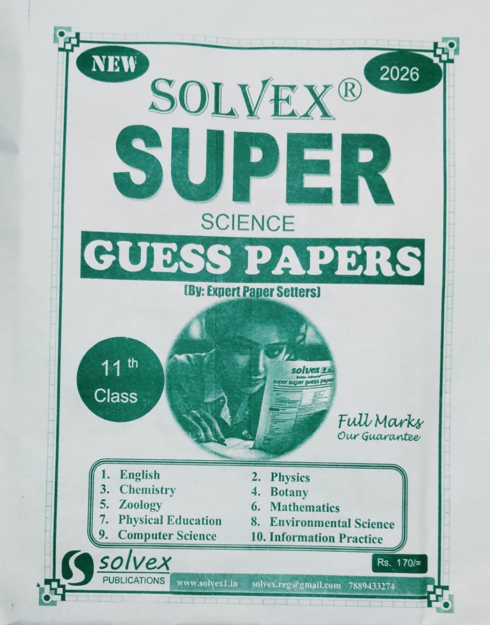 SOLVEX SUPER GUESS PAPERS for Class 11th (Science) – JKBOSE are carefully designed to provide students with focused and efficient exam preparation. Curated by experienced JKBOSE paper setters, these guess papers highlight the most expected and important questions based on the latest board syllabus and exam trends.