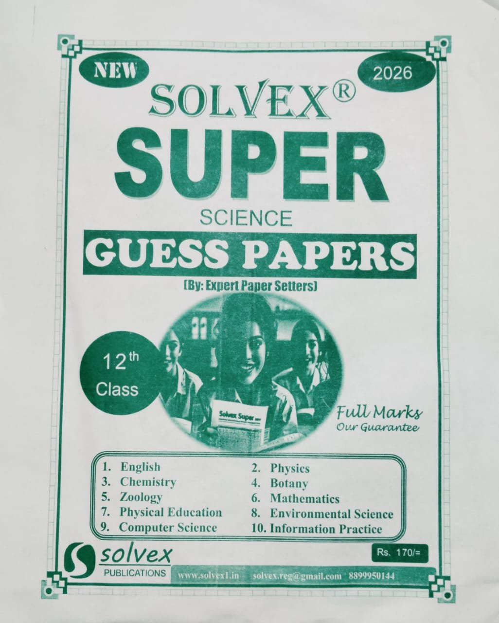SOLVEX SUPER GUESS PAPERS for Class 12th (Science) – JKBOSE are carefully crafted by expert JKBOSE paper setters to provide focused and efficient preparation for board exams. These guess papers highlight the most expected, important, and high-weightage questions from the latest JKBOSE syllabus.